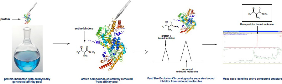 Chiromics utilizes affinity selection mass spectrometry (ASMS) as the analytical basis of its discovery platform. ASMS is an ultra-high-throughput, label-free, mass-based multi-compound screening technique which allows for the interrogation of compound mixtures for hit identification. ASMS has emerged as a complementary strategy to the traditional high-throughput screening paradigms. This unbiased screening approach allows for the biological target to "select" which compounds to bind to, thereby removing the need for artificial signal output technologies.